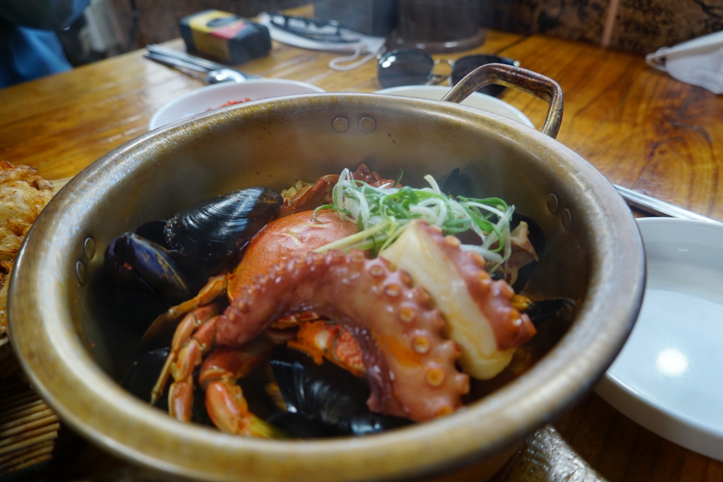 푸짐한 해물 라면과 두툼 바삭바삭 마치 튀김 같은 파전을 판매하는